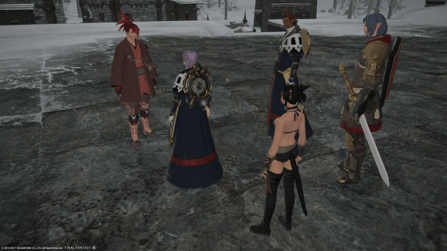 He introduced himself as Kyokuho, a geomancer! They are mages whom are able to command the elements! Very cool! Anyway he and a senior astrologian are going to share notes. There may be things we can learn from each other.
